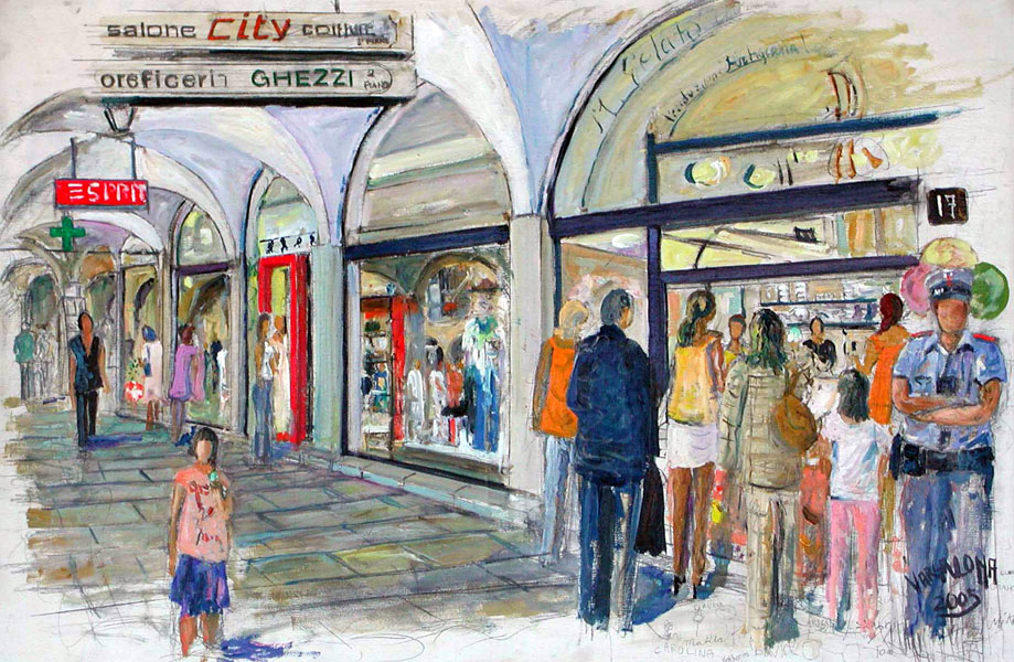 RIFLESSI IN VIA PESSINA con il gelataio La Città riflessa